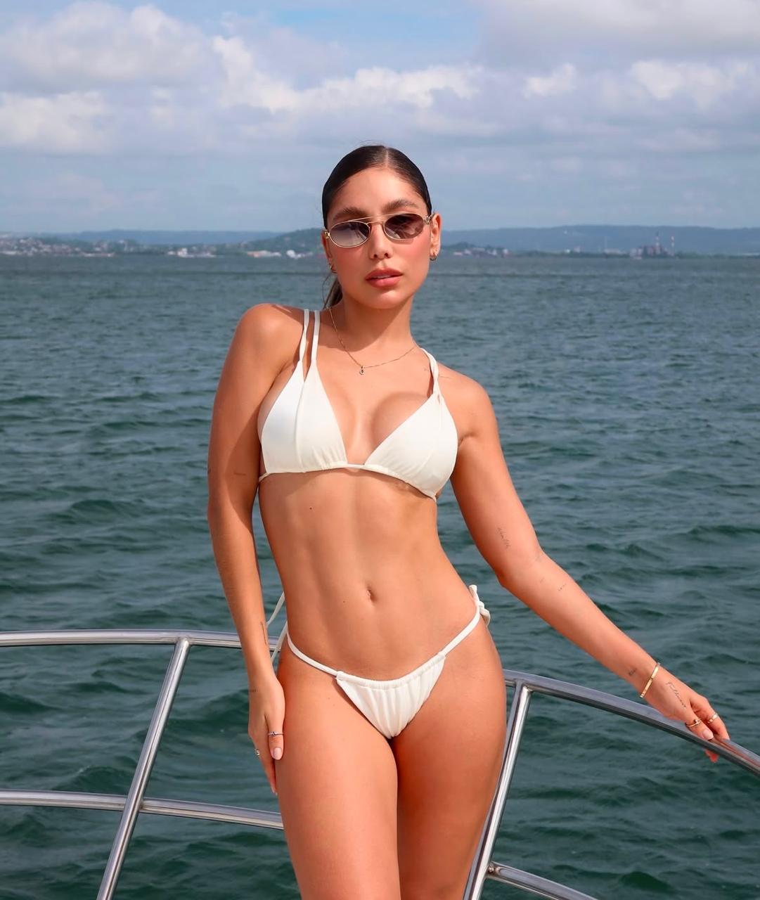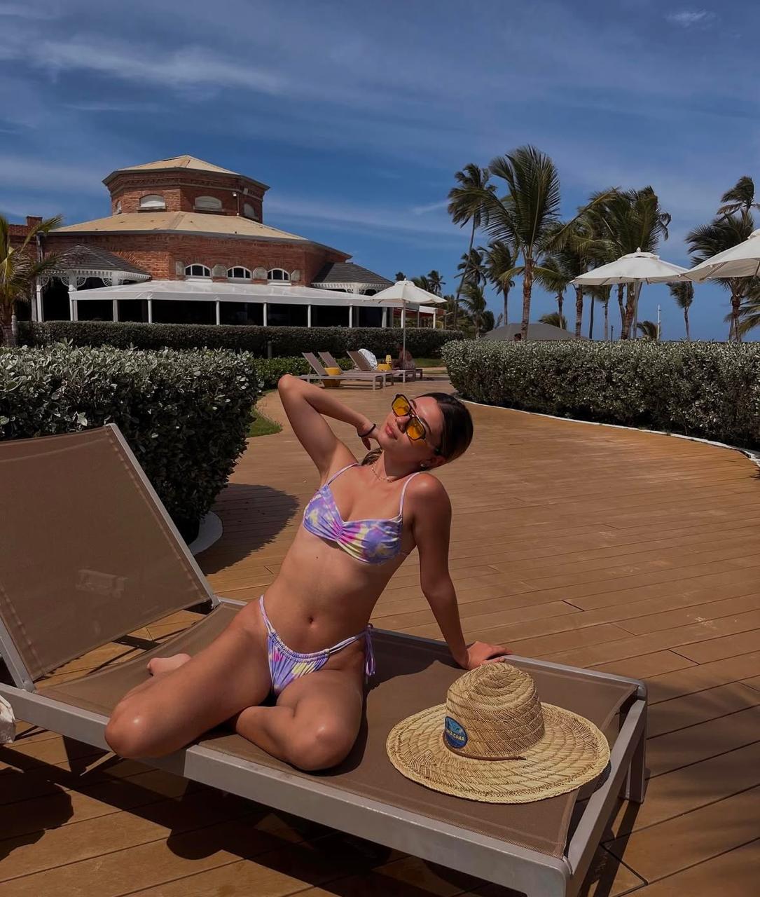 Sumérgete en un estilo salvaje y sofisticado con este bikini de dos piezas con estampado de leopardo en tonos neutros, evocando la belleza exótica de la jungla. El top, de corte triangular clásico, ofrece un escote favorecedor y se ajusta mediante lazos finos en el cuello y la espalda, permitiendo una adaptación perfecta a la silueta. La braguita, de corte bajo con tiras laterales ajustables, realza las curvas de manera natural y cómoda. Este conjunto es ideal para quienes desean destacar con un estampado atemporal y un diseño que combina sensualidad y confort, perfecto para disfrutar de días soleados con un toque de audacia.